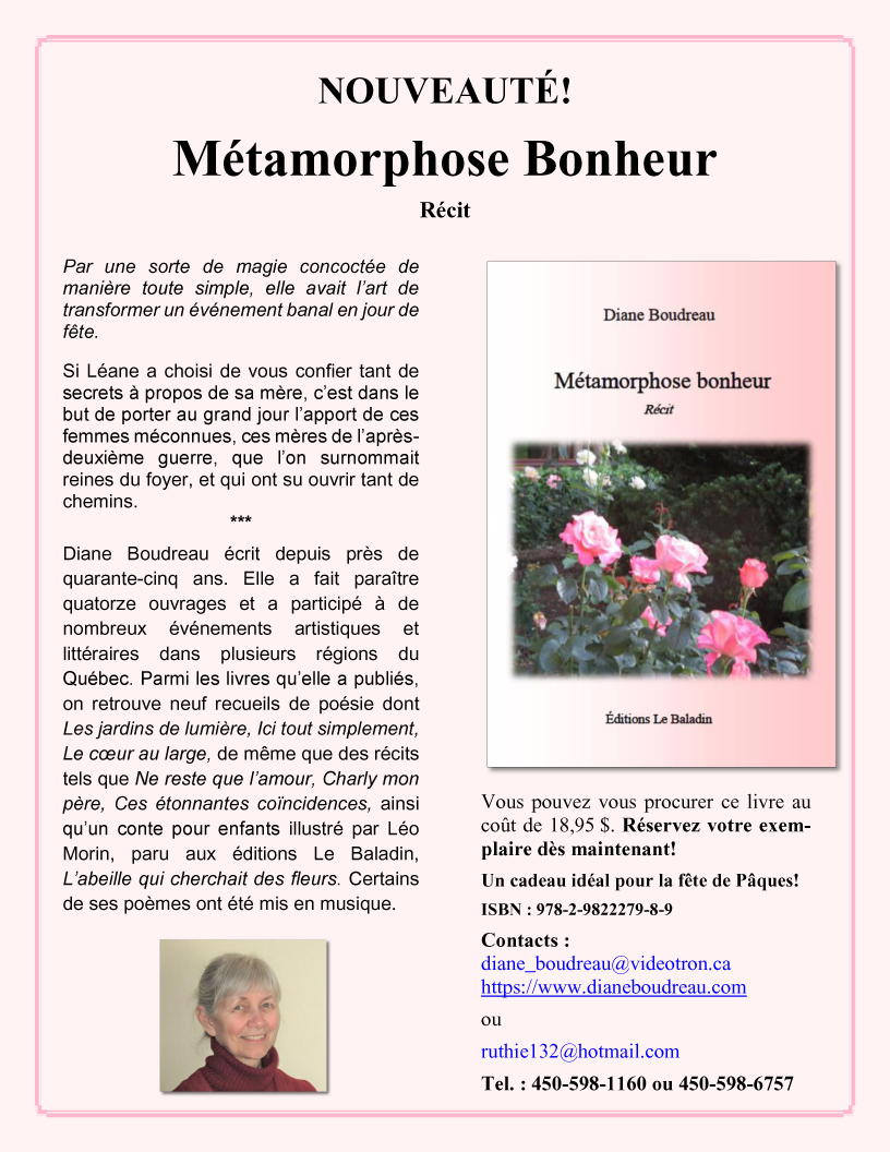Lancement le 25 mai 2025 – Diane Boudreau, écrivaine